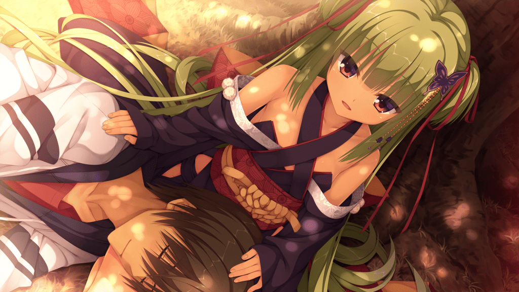 An example of shared agency, and one of my favorite visual novel romances for it, is that of Masaomi and Murasame in Senren*Banka. Murasama is a spirit born from human sacrifice who has existed for 500 years and the central conflict of her story concerns whether she might become human once more. Masaomi can restore her humanity by performing a sacred ritual, but Murasame herself feels conflicted. Over her 500 years of existence, she fears she has drifted away and become something else entirely. And though she wishes to be together with Masaomi, she is unsure if she can truly be human again–or if she deserves to.